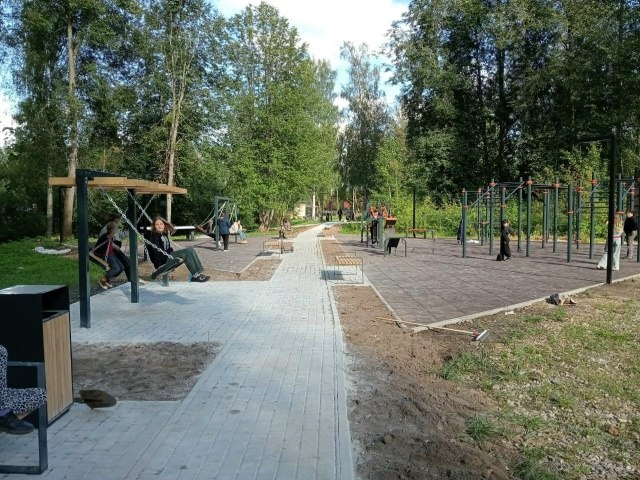 Благоустроили и парк ОЦКБ в Окуловке. Теперь каждый житель и гость города найдёт себе здесь место для приятного отдыха: обновлённые аллеи в берёзовой роще встретят любителей прогулок уютом и красотой, детские площадки обеспечат детворе весёлые и безопасные игры, а спортивные зоны порадуют своим разнообразием и функциональностью любителей активного отдыха.