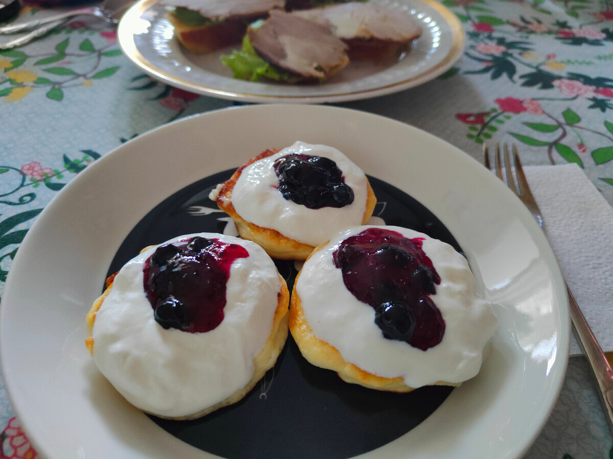 На утро предлагаются великолепные творожные оладьи, поданные со сметаной и домашним вареньем из черной смородины. Это блюдо — находка для настоящих гурманов, которые ценят вкус и здоровье. Оладьи получается легкими и воздушными, а варенье добавляет сладости и нотку домашнего уюта.