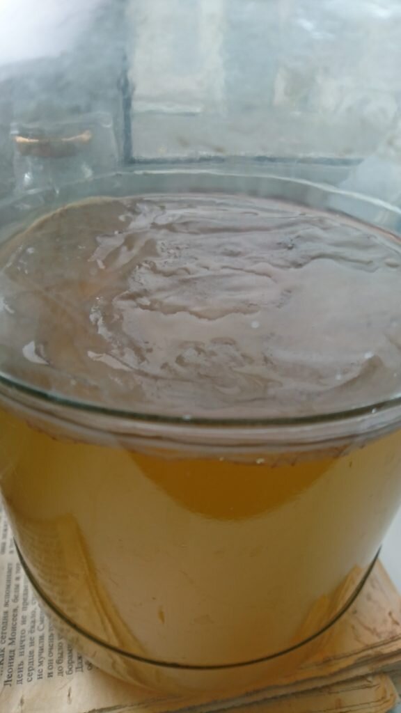 При наливании нового чая старайтесь избегать контакта с грибом. Лучше всего отодвинуть его с помощью деревянной ложки, а затем аккуратно наливать напиток по стенкам банки. Такие манипуляции помогут избежать повреждений.