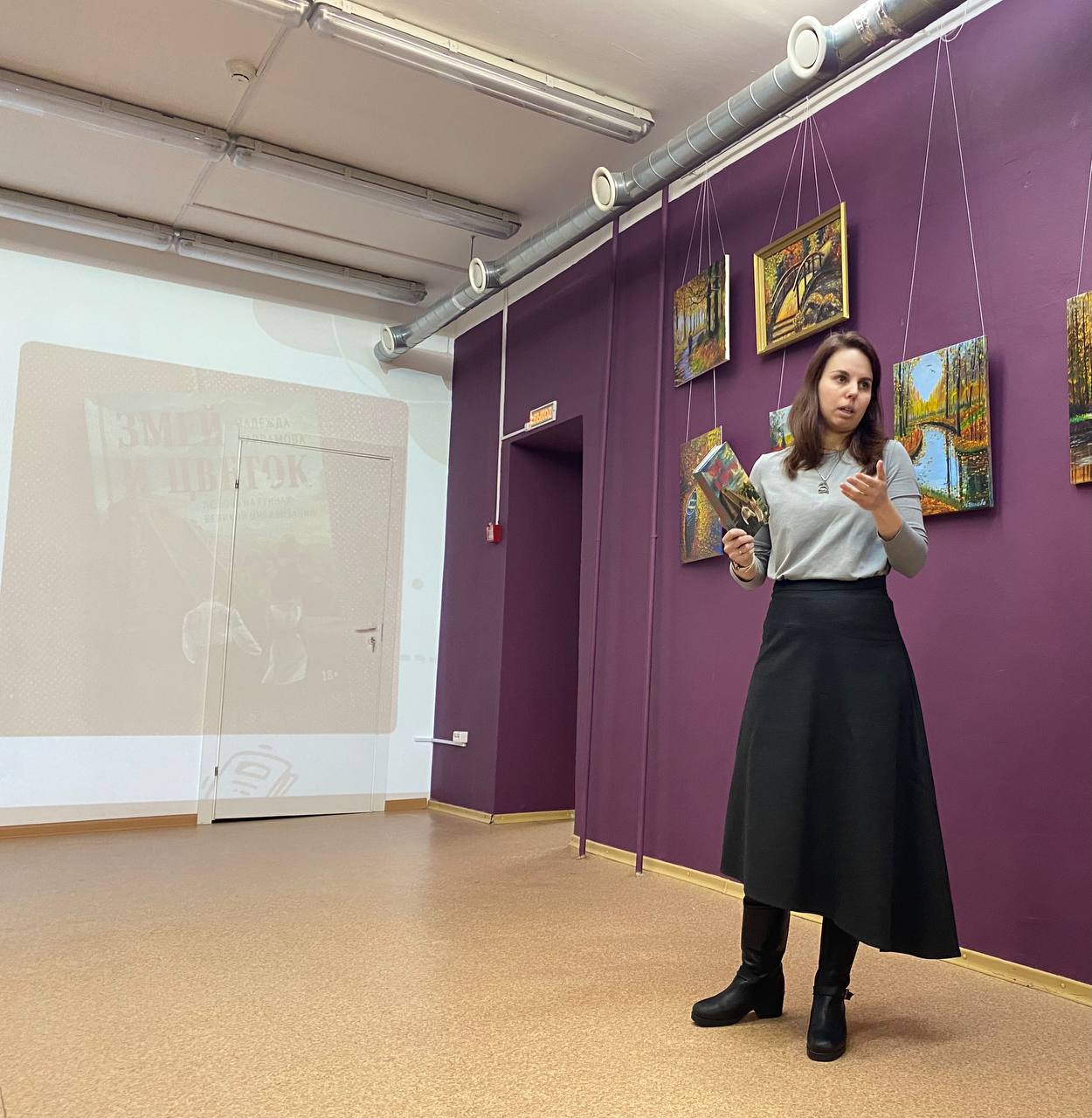 Сегодня, 18 января, в Великом Новгороде в Молодёжной библиотеке «Читай-город» прошла презентация книги писательницы Надежды Харламовой «Змей и Цветок».