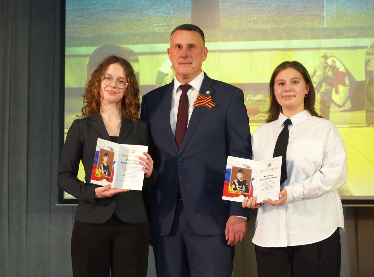 По сложившейся традиции вручил ученикам наших школ и колледжей почётные свидетельства участника Вахты Памяти «Пост №1» у мемориала «Вечный огонь славы».
