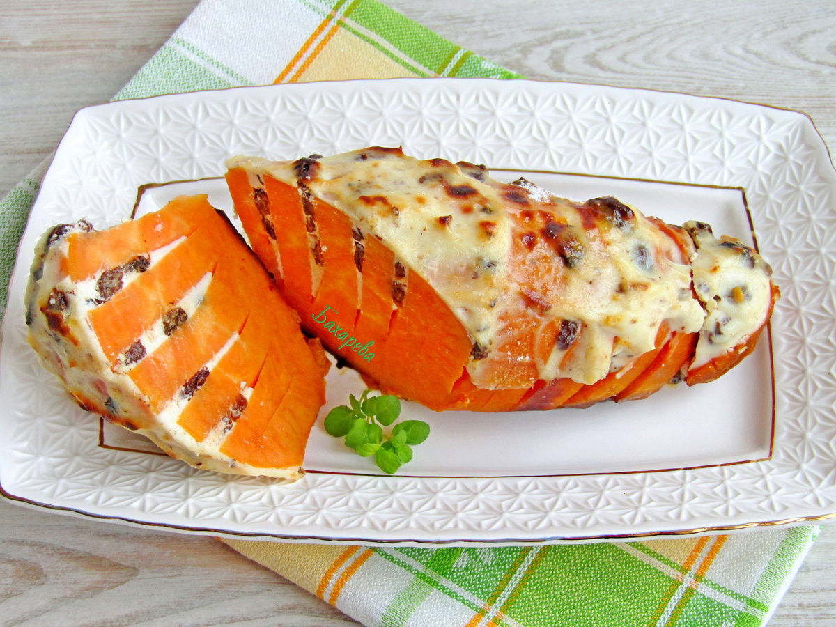 Батат, известный как сладкий картофель, постепенно завоевывает популярность. Этот ароматный овощ способен привнести интересные вкусовые нотки в привычные блюда. В этом рецепте он выступает в главной роли в сочетании с нежной творожной пастой, что делает блюдо по-настоящему уникальным.