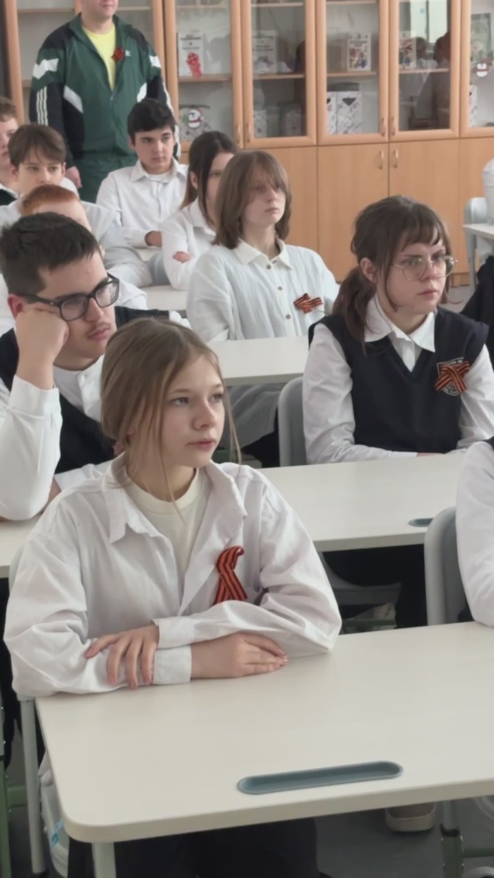 На уроке восьмиклассники просмотрели фильм журналиста Юлии Нурутдиновой «За «Отвагой», после чего обсудили его с ведущей телеканала Ариной Аксёновой.