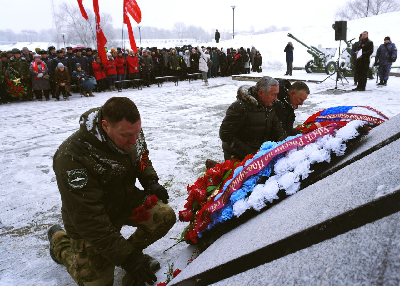 Сегодня в полдень у мемориального комплекса «Монумент Победы» провели торжественный митинг, посвященный 82-й годовщине освобождения Новгорода от немецко-фашистских захватчиков.