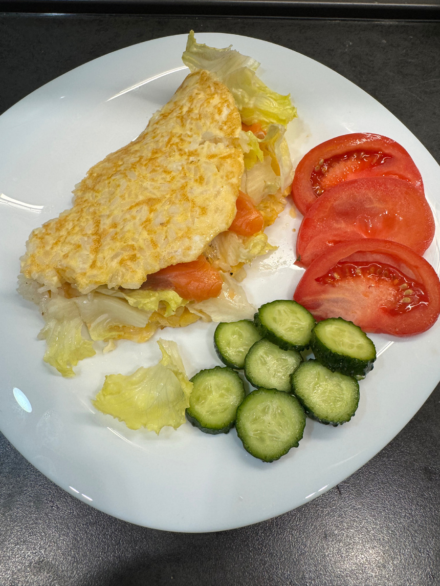 Добавление овощей не только увеличивает объём порции, но и насыщает её клетчаткой, что помогает сохранить чувство сытости на долгое время. Овощи в сочетании с полезными жирами из рыбы обеспечивают баланс БЖУ и поддерживают здоровье кожи.