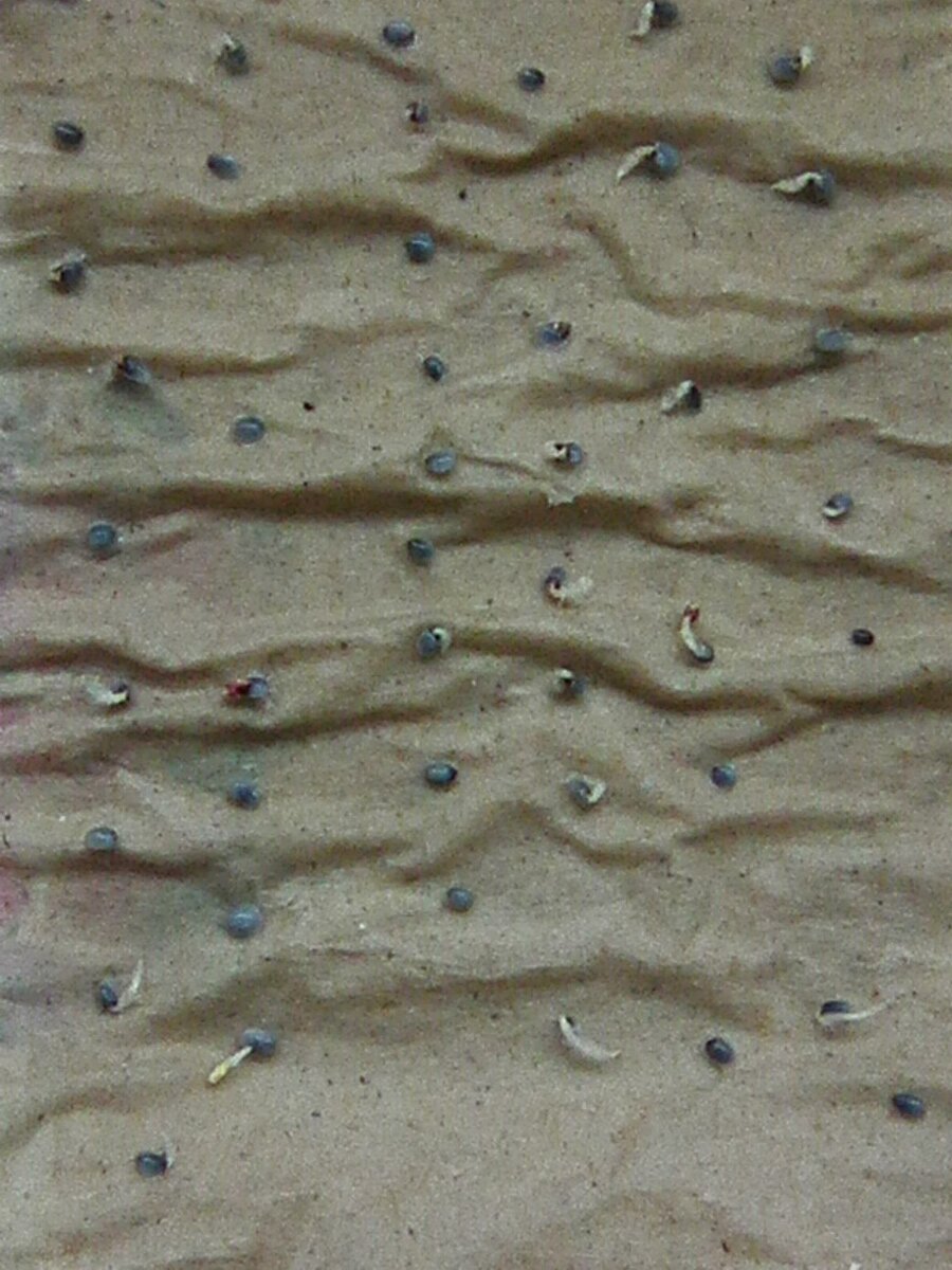 При раскладке семян рекомендуется использовать пинцет или шпажку. Это облегчит задачу, особенно если семена покрыты клейкой массой. Чтобы семена легче отделялись от инструмента, необходимо предварительно смочить бумагу, на которой они прорастали. Если корешок семечка застрял в бумаге, это не проблема — его можно аккуратно отделить вместе с небольшим кусочком бумаги и уложить в грунт.
