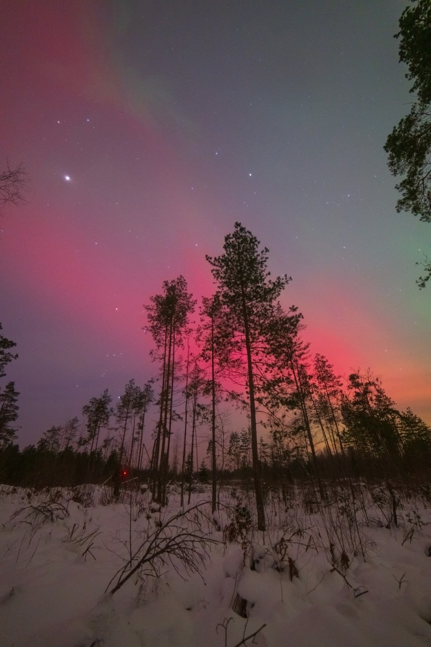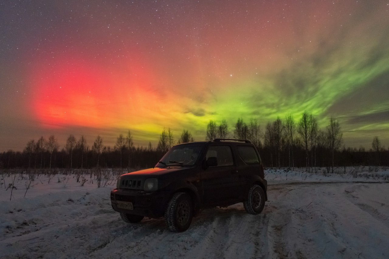 Как пояснила в соцсетях астрофотограф Анастасия Третьякова, ночь с 19 на 20 января в Новгородской области не сулила возможности для наблюдений. Несмотря на прогнозы мощной магнитной бури, точное время её начала было неизвестно, поэтому группа выехала в Псковскую область, надеясь на удачу. Главной задачей было найти просвет в сплошной облачности.