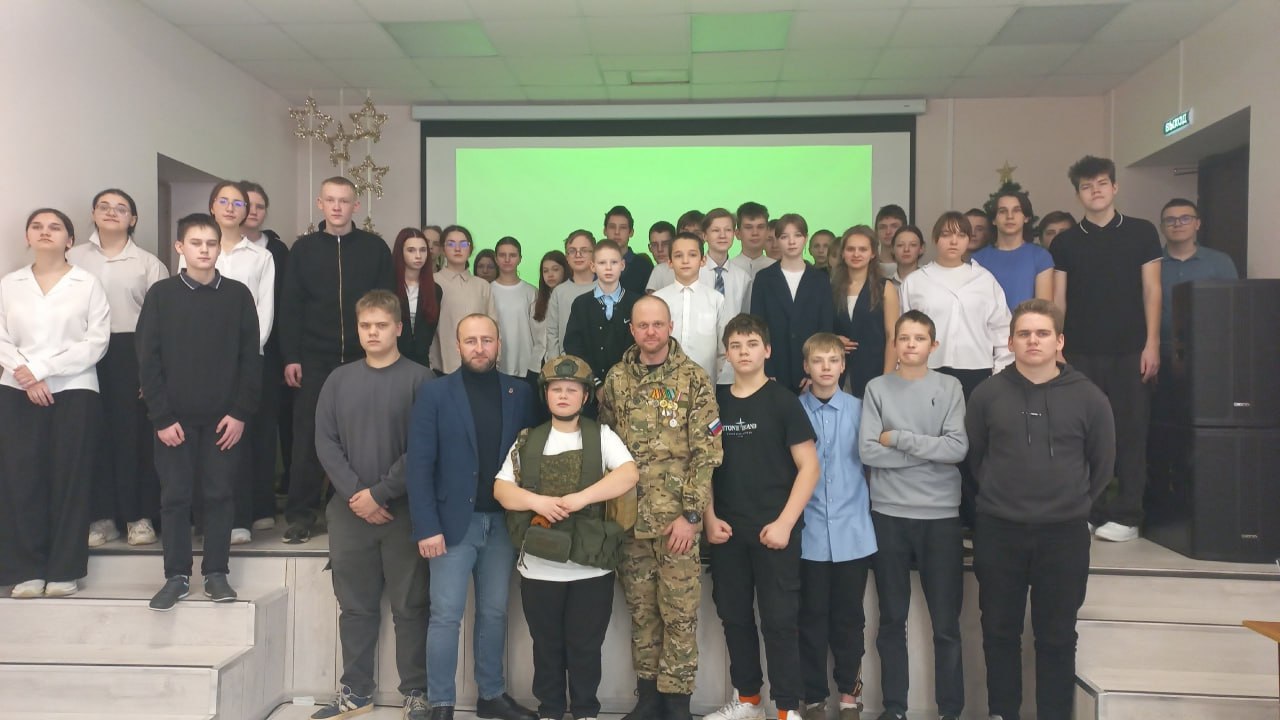 Встречу для ребят 5-9 классов провёл участник регионального проекта «СВОи Герои 53» Антон Сухиненко.