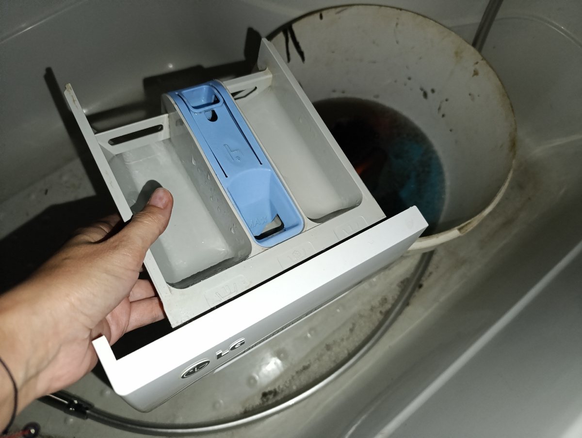 Лоток стиральной машины быстро засоряется остатками моющих средств и грязи, попадающей сюда вместе с водой. В теплой и влажной обстановке это может привести к неприятным последствиям: