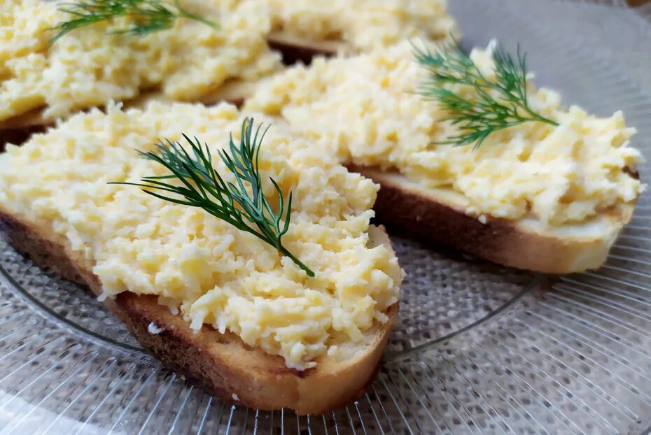 Сначала подготовьте все необходимые ингредиенты — сыр, яйца и масло. Убедитесь, что масло размягченное для легкости смешивания.Отварите яйца до крутого состояния, затем дайте им остыть и отделите желтки от белков — нам понадобятся только желтки.Натрите сыр на мелкой терке, чтобы он лучше смешивался с другими ингредиентами.Теперь соедините натертый сыр с измельченными желтками в удобной посуде.Добавьте размягченное сливочное масло и 1 чайную ложку горчицы, затем тщательно перемешайте до получения однородной массы.Не забудьте посолить по вкусу, чтобы подчеркнуть все ароматы!Тем временем, подрумяньте белый хлеб на сухой сковороде до золотистой корочки.Намажьте получившуюся сырную массу на теплый хлеб и подавайте на стол, украсив веточкой зелени для эффекта.Эта восхитительная сырная намазка станет настоящей находкой для любителей закусок на любой праздник!