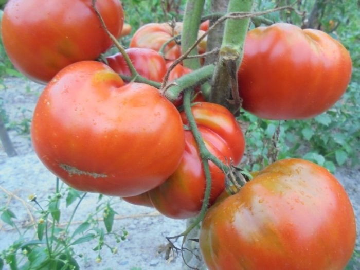 У этого сорта четкие отличия — мощный индетерминантный куст, высота которого достигает 200 см, и крупные плоды весом от 500 до 600 граммов. Однако за такими характеристиками стоит немалое количество заботы. Растение требует обязательной подвязки и регулярного пасынкования, иначе оно будет подвержено заболеванию и недополучит необходимое питание.