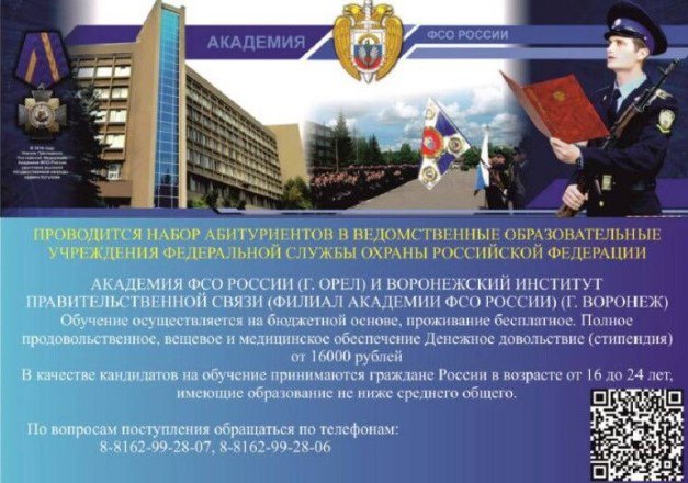 Учебные заведения ФСО России продолжают приём абитуриентов