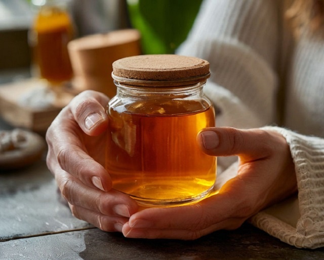 Проверка на руке: Нанесите немного меда на тыльную сторону пальца. Натуральный мед впитается, оставив кожу мягкой, а если он остался липким — это может говорить о добавлении сахара.