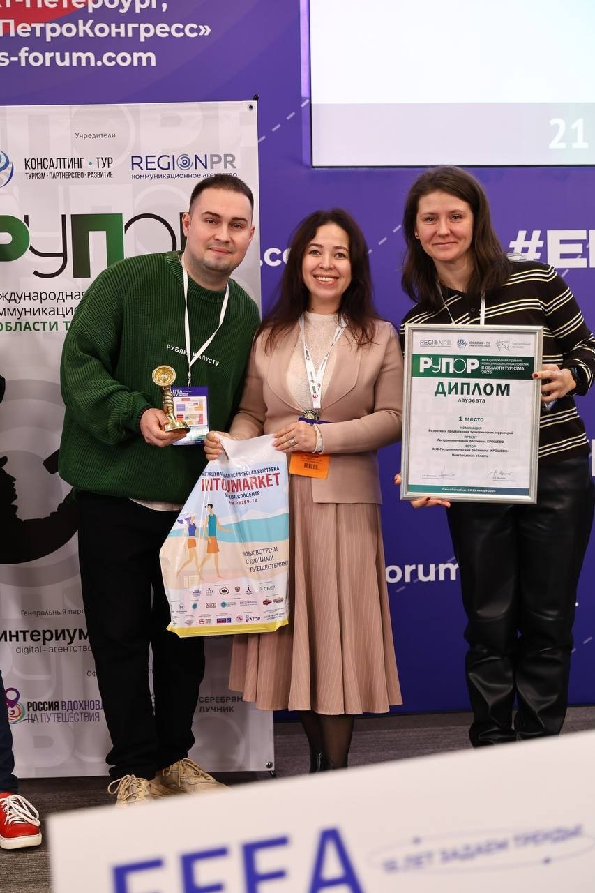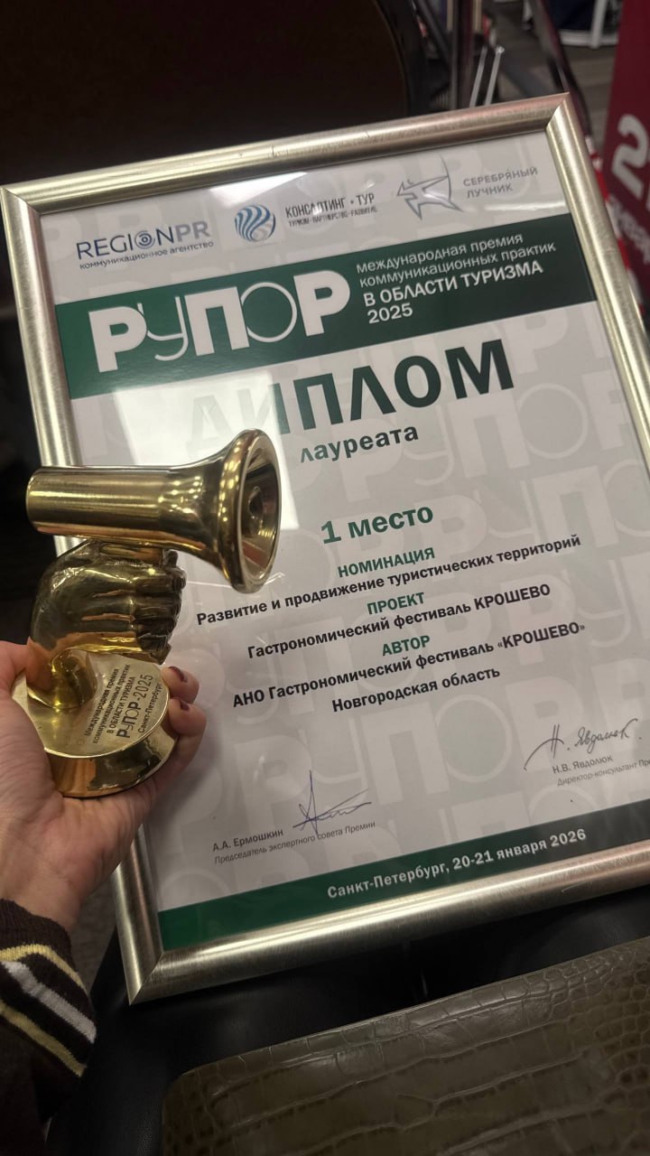 В Санкт-Петербурге прошла премия коммуникационных практик в области туризма «Рупор». Гастрономический фестиваль «Крошево» стал абсолютным фаворитом и собрал максимальное количество баллов. Об этом сообщили в министерстве инвестиционной политики Новгородской области.