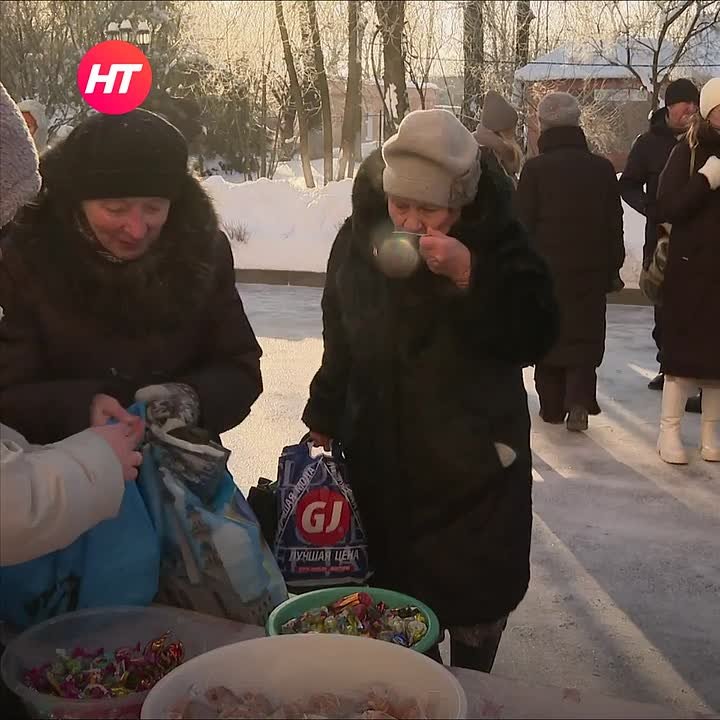 Возле храма развернулась полевая кухня. Готовили свежую гречневую кашу: с тушенкой и поджаркой из моркови и лука. Всего 500 обедов. 200 из них добровольческий десант «Родные люди» развёз по адресам нуждающихся в Великом Новгороде и Пролетарии.