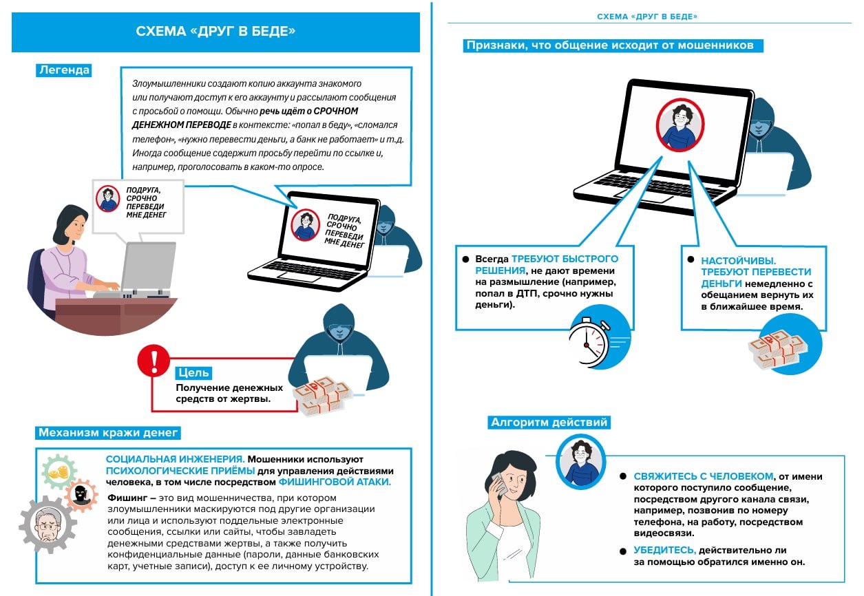 В карточках представлены самые популярные мошеннические схемы. Там же можно найти алгоритм действий, который поможет не стать жертвой злоумышленников.