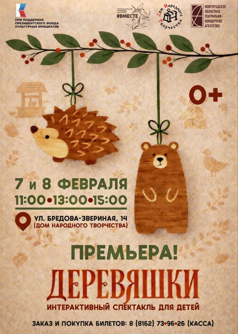 В феврале в Новгородском областном Доме народного творчества состоится премьера интерактивного спектакля «Деревяшки». Об этом сообщили в региональном министерстве культуры и туризма.
