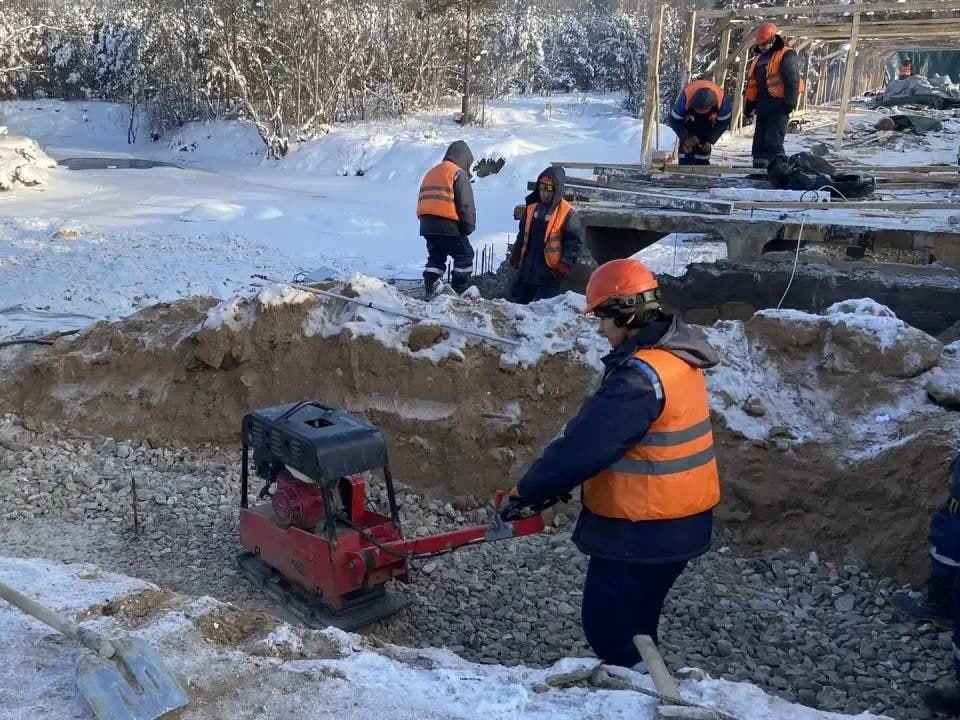 Современные технологии и материалы позволяют проводить строительно-монтажные работы на искусственных сооружениях даже при минусовой температуре. На сегодняшний день дорожники уже отремонтировали одну половину моста сейчас по ней запущено движение автотранспорта. Также выполнено устройство конусов сооружения, сейчас ведется подготовка к ремонту бетонных поверхностей.
