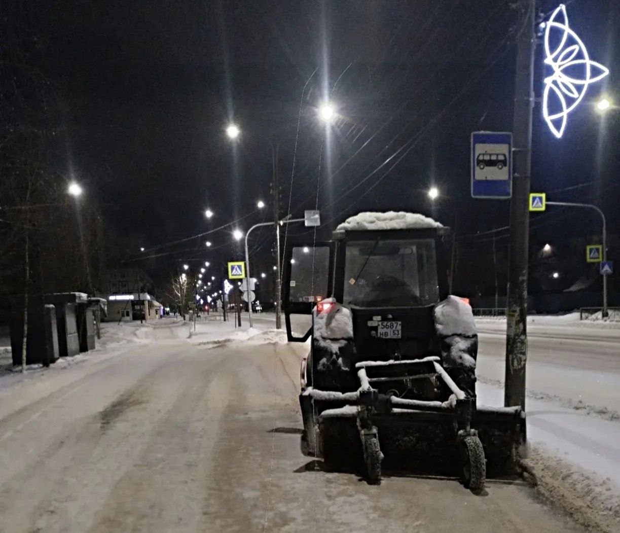 Сразу, ночью и утром, после окончания обильных осадков, МКУ «Городское хозяйство», МАУ «Парки Великого Новгорода» и подрядная организация «Солид» приступили к работам по расчистке города от снега.