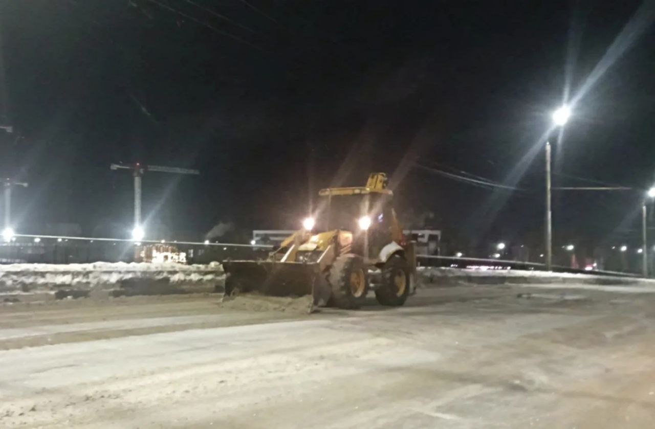 В ночную смену проводились работы по механизированной уборке дорог, тротуаров, подходов к социальным и образовательным учреждениям.
