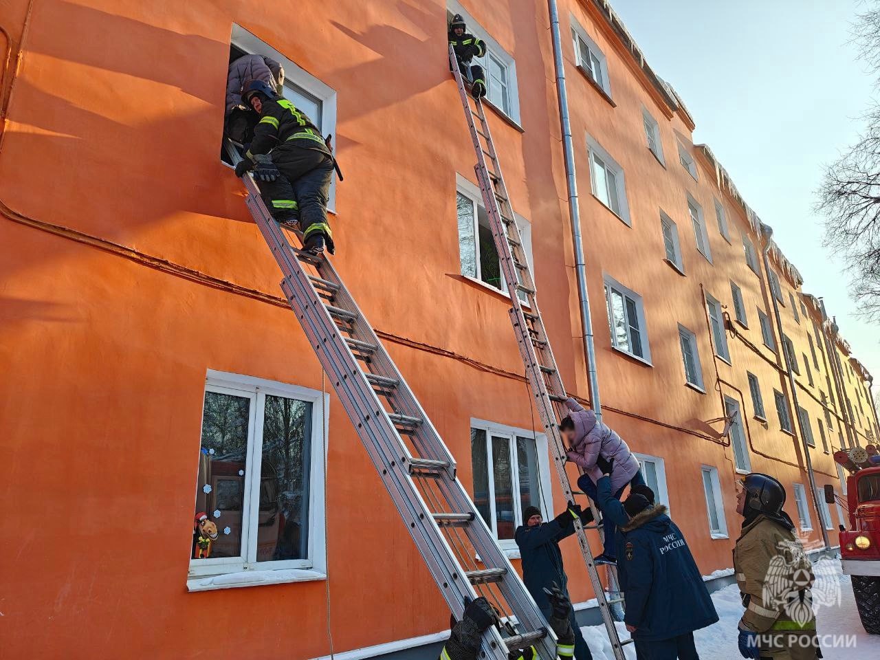 Из горящей квартиры в Боровичах пожарные спасли четырёх человек и одну собаку