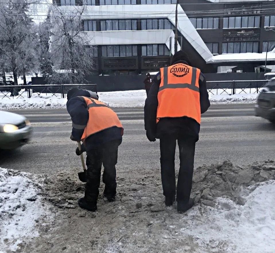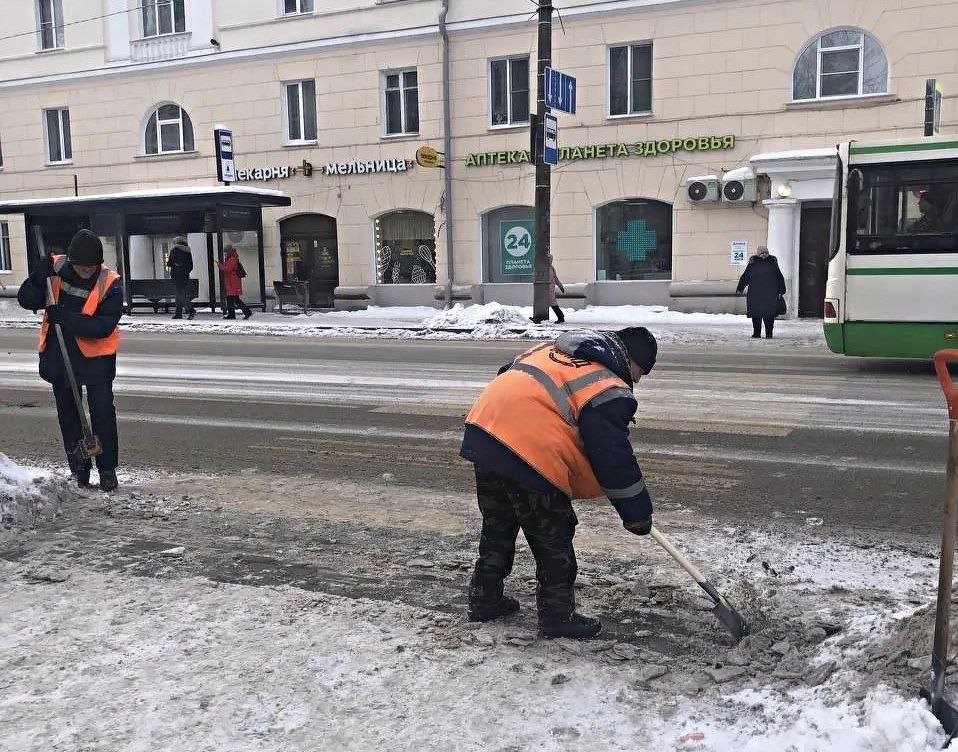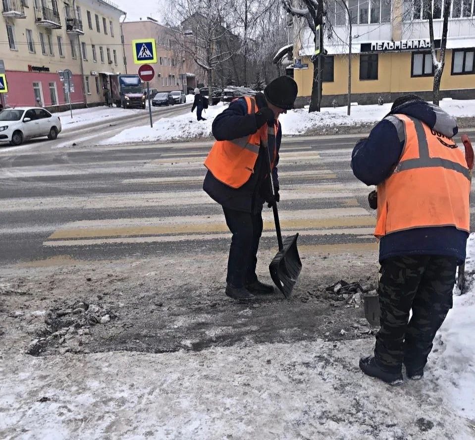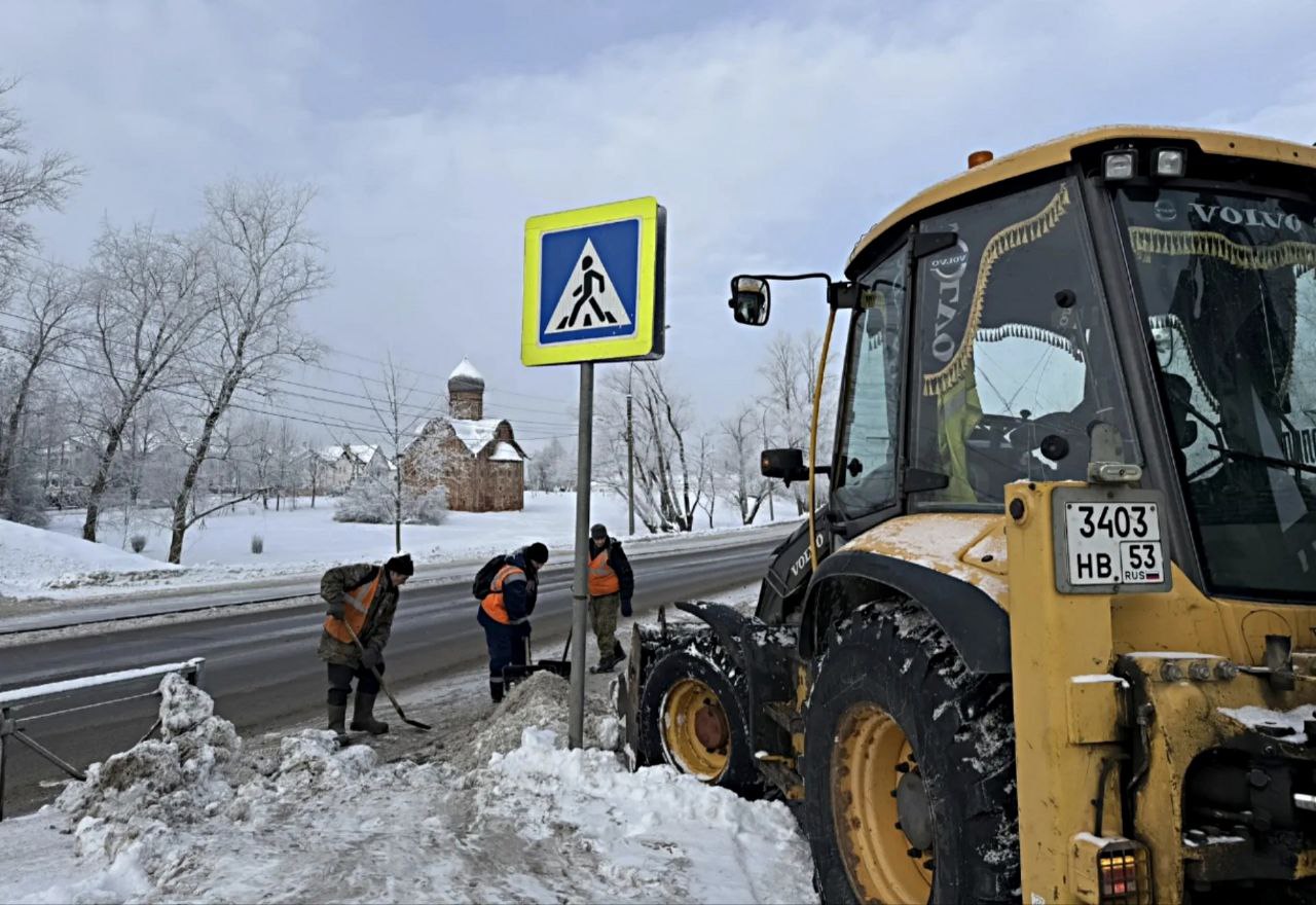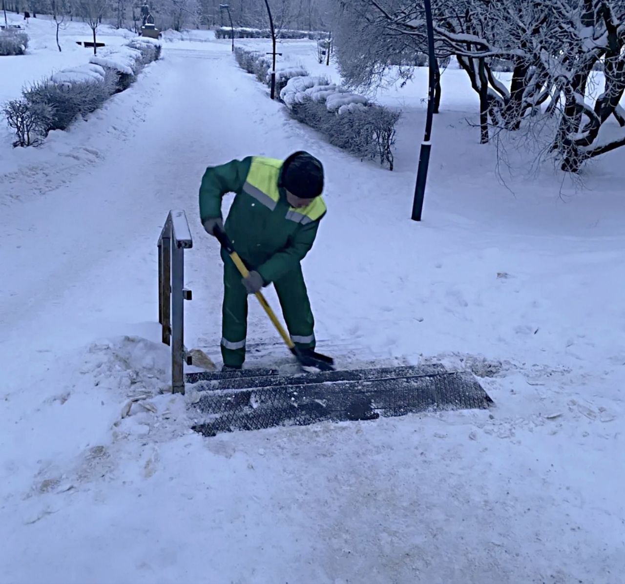 Специалистами ручной уборки МКУ «Городское хозяйство», МАУ «Парки Великого Новгорода» и подрядной организации «Солид» ведутся работы по расчистке от снега и наледи: