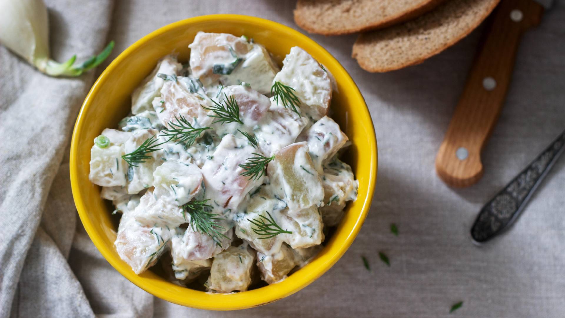 Если вам хочется приготовить на ужин легкое блюдо, запоминайте этот рецепт. Сытный картофельный салат в греческом стиле заменит любой гарнир и мясо. Его секрет в пикантном соусе из зелени, йогурта и чеснока.