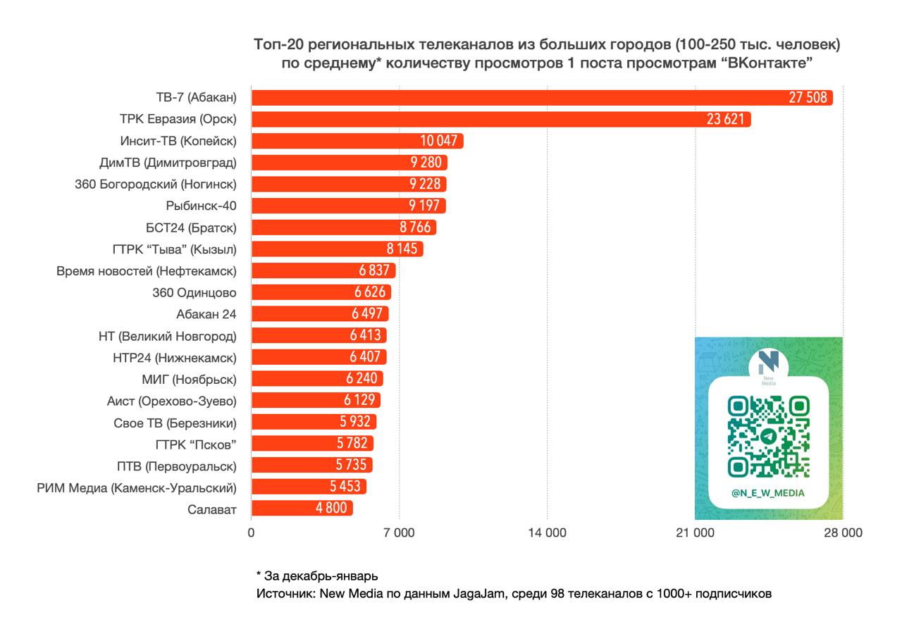 По данным рейтинга New Media мы – среди самых просматриваемых сообществ региональных телеканалов в декабре-январе.