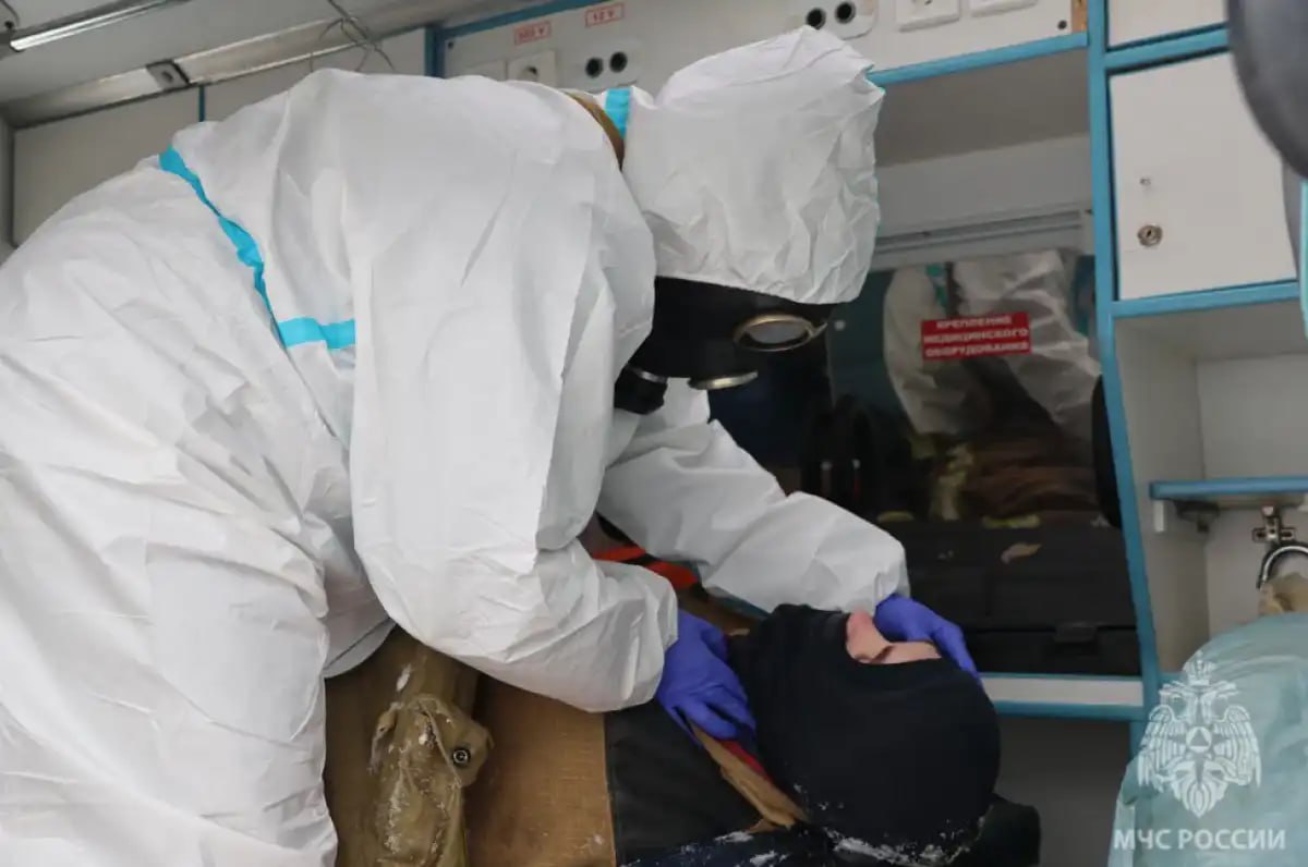 В ходе учений специалисты-химики провели радиационную и химическую разведку и дозиметрический контроль территории. Врачи скорой помощи оказали экстренную помощь пострадавшим.