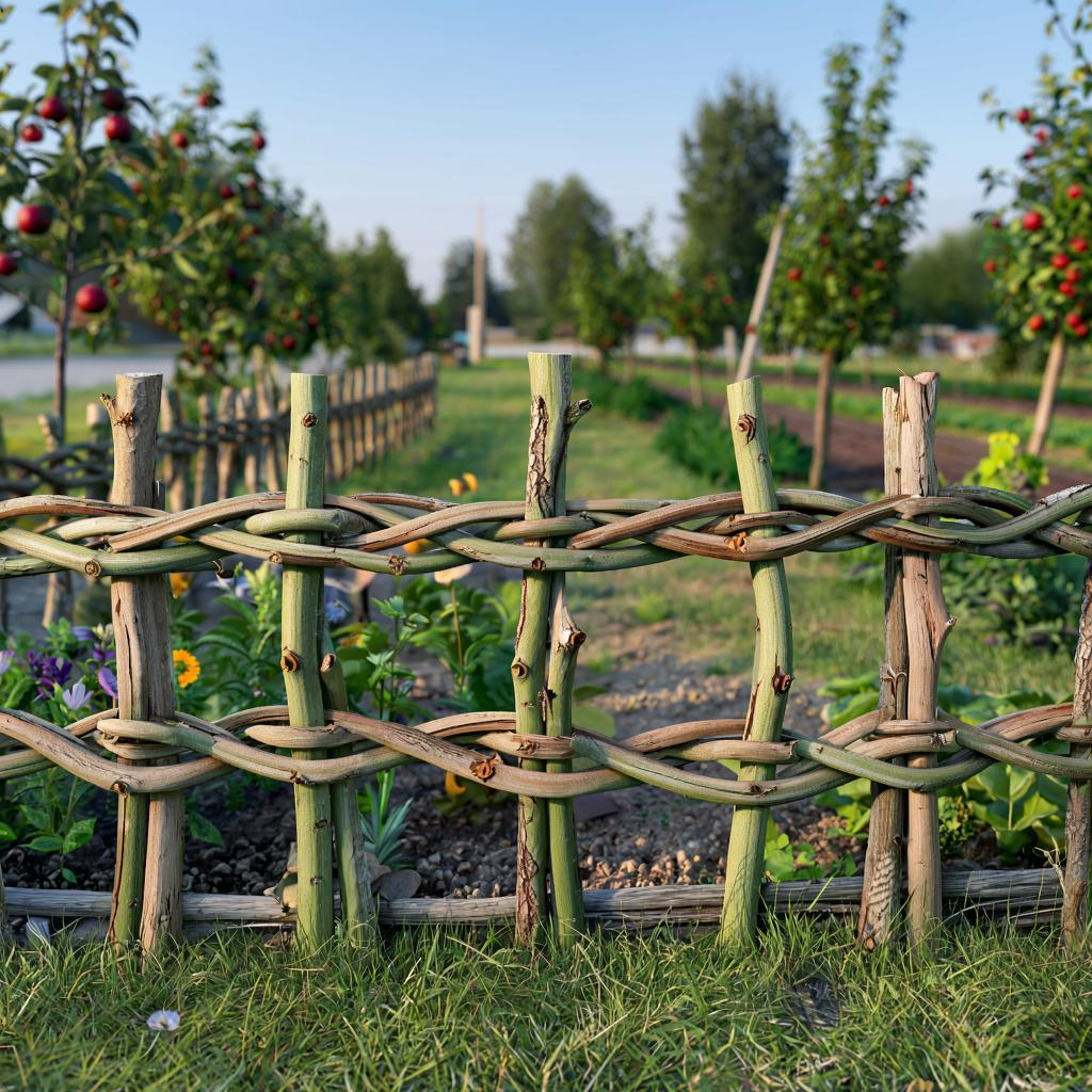 Плетеные заборы имеют широкое применение в ландшафтном дизайне. Они идеально подходят для зонирования пространства, создавая уютные уголки для отдыха. Невысокие плетеные бордюры эффектно отделяют клумбы и грядки, добавляя участку привлекательности и стиля.