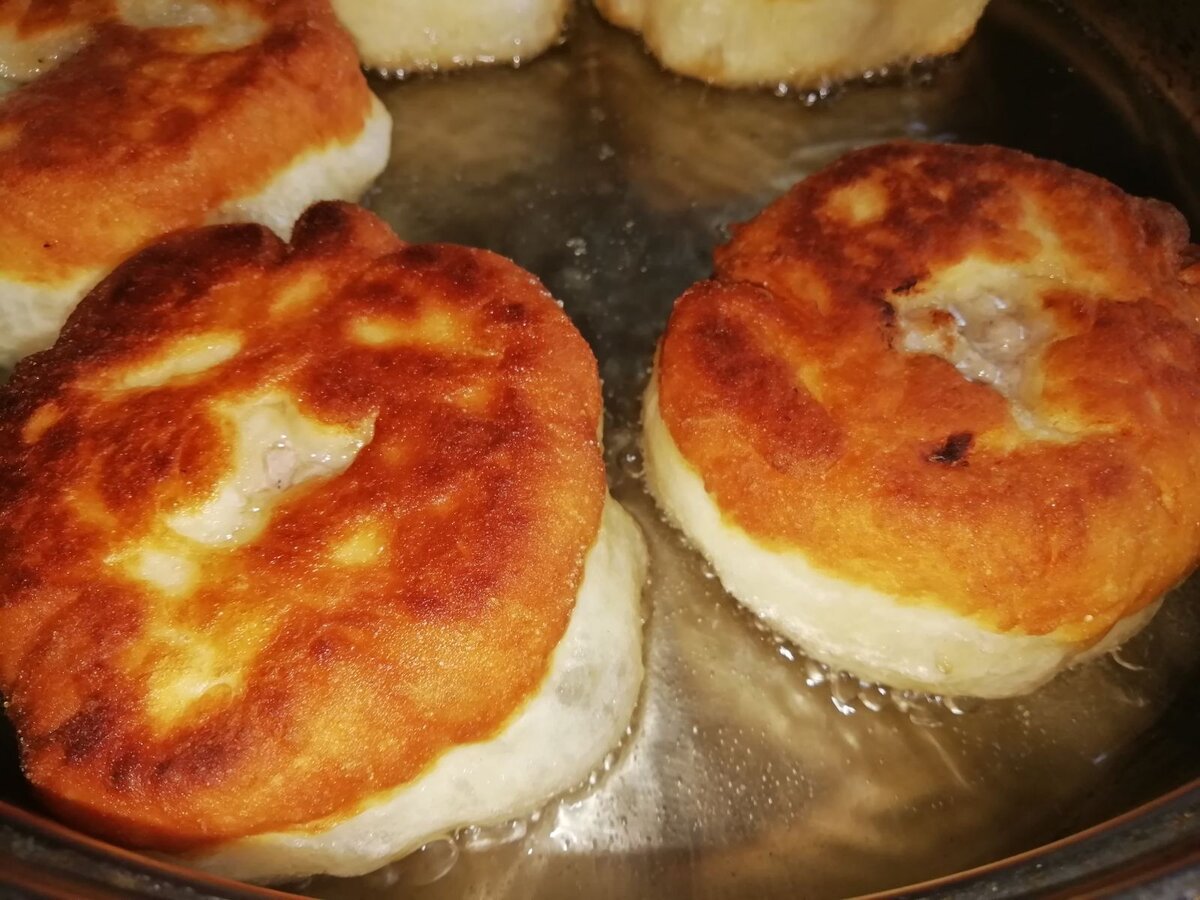 5. Главное, чтобы не пересушить. Жарьте беляши в разогретом масле, начинкой вниз, на среднем огне. Так тесто подрумянится, а начинка останется влажной.