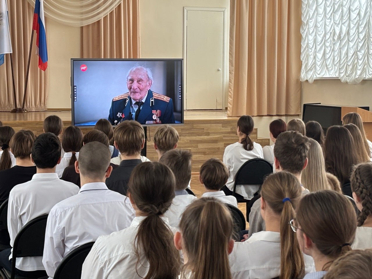 Показ в школе № 13 — первый из череды подобных. В дальнейшем фильм-воспоминание Василия Степановича Крестьянинова журналисты НТ покажут и в других учебных учреждениях области — как в рамках массовых просмотров для нескольких классов, так и на уроках «Разговоры о важном».