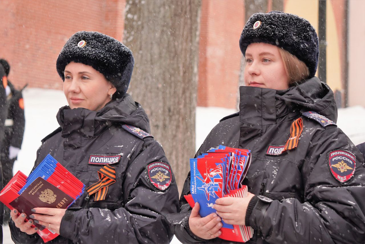 Сегодня в канун праздника День защитника Отечества, у мемориала "Вечный Огонь Славы" в торжественной обстановке вручили юным новгородцам паспорта гражданина Российской Федерации.