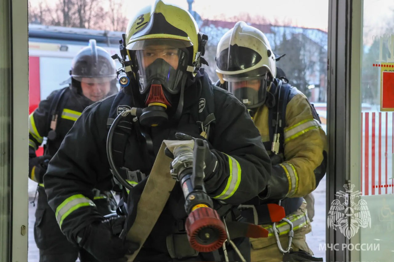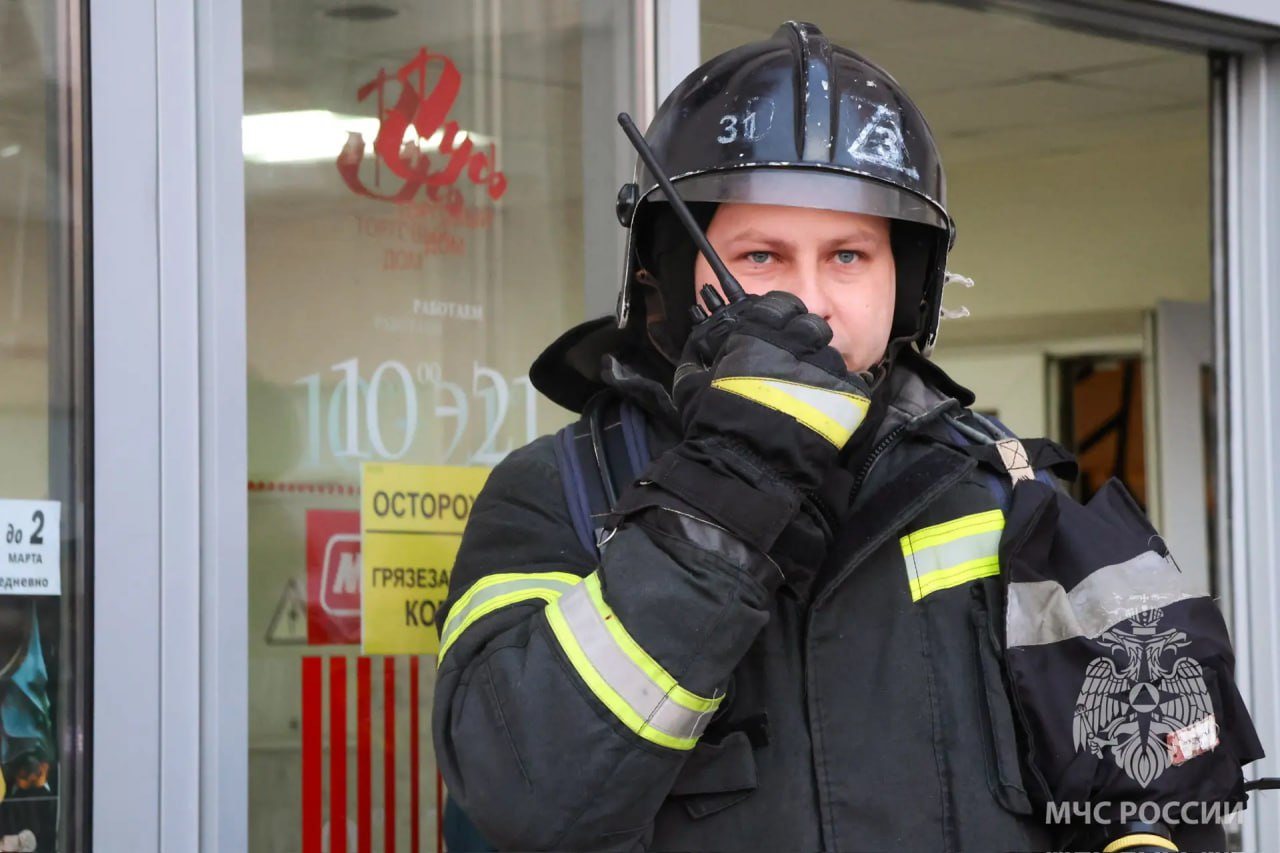 В Великом Новгороде на условном пожаре в ТД «Русь» огнеборцы спасли человека