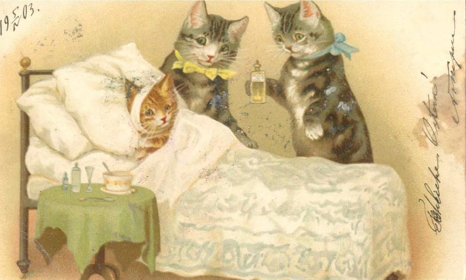 В первый день весны отмечается День кошек. Музей-заповедник поделился в соцсетях раритетными открытками с изображениями усатых-полосатых из собственной коллекции.