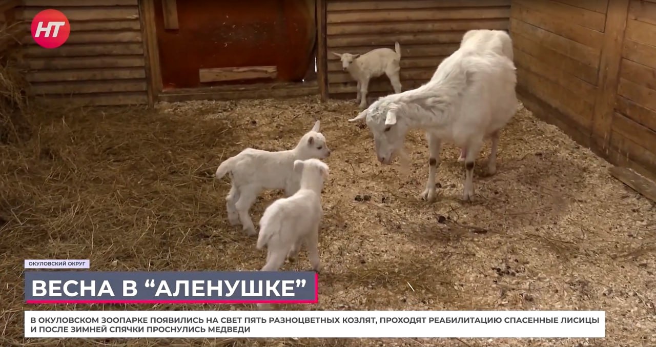 «У нас в один день родили три козы. Одна коза родила троих беленьких, одна родила черненького и одна цветного», – отметила ветеринарный врач зоопарка «Алёнушка» Анастасия Галдина.