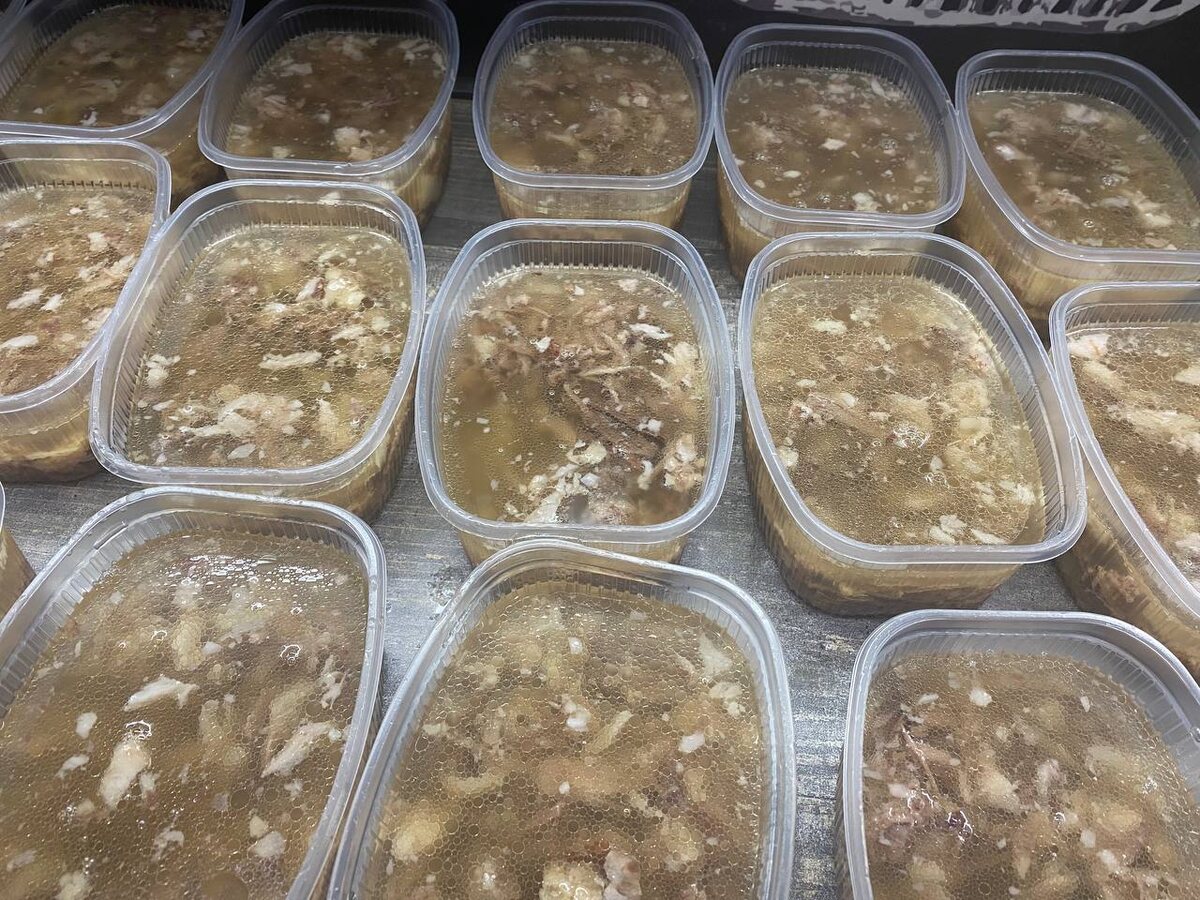Охлаждение: Если требуется, добавьте размоченный желатин для усиления плотности бульона. Перелейте его в формы, положите нарезанное мясо и поместите в холодильник для застывания.