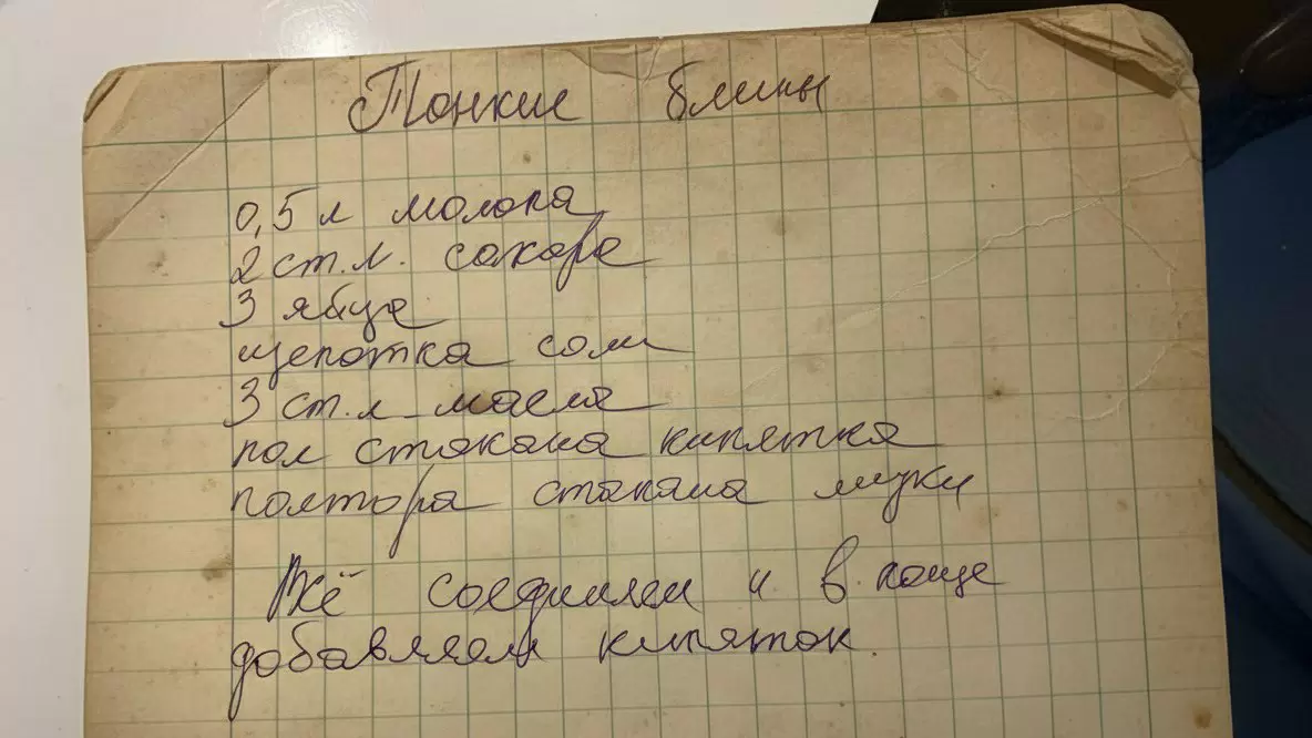 В традициях нашей семьи Масленица обходится без покупных смесей и быстрого приготовления блинов. Секрет уникальных «кружевных» блинов, записанный в старой тетрадке бабушки Зины, передается из поколения в поколение. Этим рецептом делится мама, а сама сковорода уже давно перешла к ней. Сегодня открывается эта тетрадь, чтобы рассказать о том, почему бабушкины блины всегда получаются неповторимыми, и какой простой ингредиент делает их по-настоящему домашними.