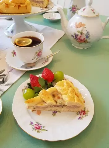 5. Дать тесту подняться в тепле около 20 минут, после чего отправить пирог в духовку на 50–60 минут при температуре 180 градусов по Цельсию. Перед подачей дать немного остыть и переложить на тарелку.