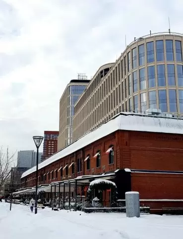 Интерьер ресторана вдохновляет на продолжительное пребывание: панорамные окна и уютные уголки с живыми цветами создают неповторимую атмосферу. А камин, хоть и декоративный, добавляет нотку уюта и указывает на степень исторической глубины этого места.