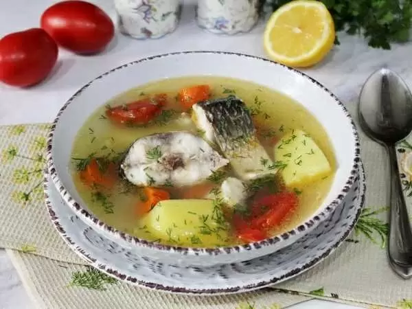 Тем временем рыбу очищают, выпотрошивают и нарезают. После 20 минут варки добавляют рыбу в суп, а зелень убирают — она уже отдала свой аромат. Готовят все вместе еще 15-20 минут на небольшом огне. В самом конце добавляют сок половины лимона, что придает блюду свежесть и яркость.