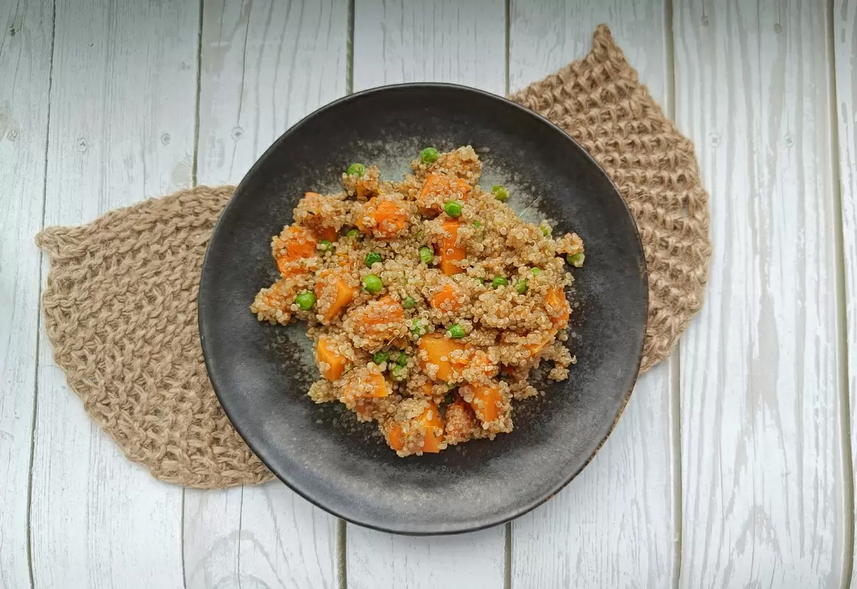 Для быстрого и легкого гарнира идеально подходит сочетание киноа с тыквой и зелёным горошком. Замороженные продукты позволяют существенно сократить время приготовления, что делает этот рецепт особенно удобным для занятых людей.