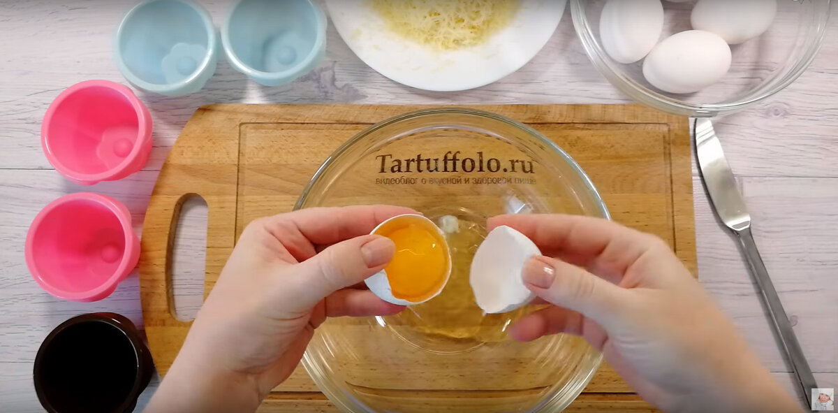 Затем, когда белки схватились, их можно посыпать натертым сыром вокруг углублений. Аккуратно выкладываются желтки, каждый из которых слегка солится. После этого «лукошки» снова возвращаются в духовку на 10 минут, пока желтки не достигнут необходимой степени готовности.