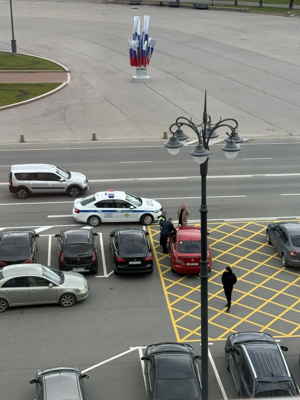 Читатели «53 новостей» прислали снимок новой дорожной разметки, которая появилась в Великом Новгороде на площади Победы-Софийская у входа в Дом Советов.
