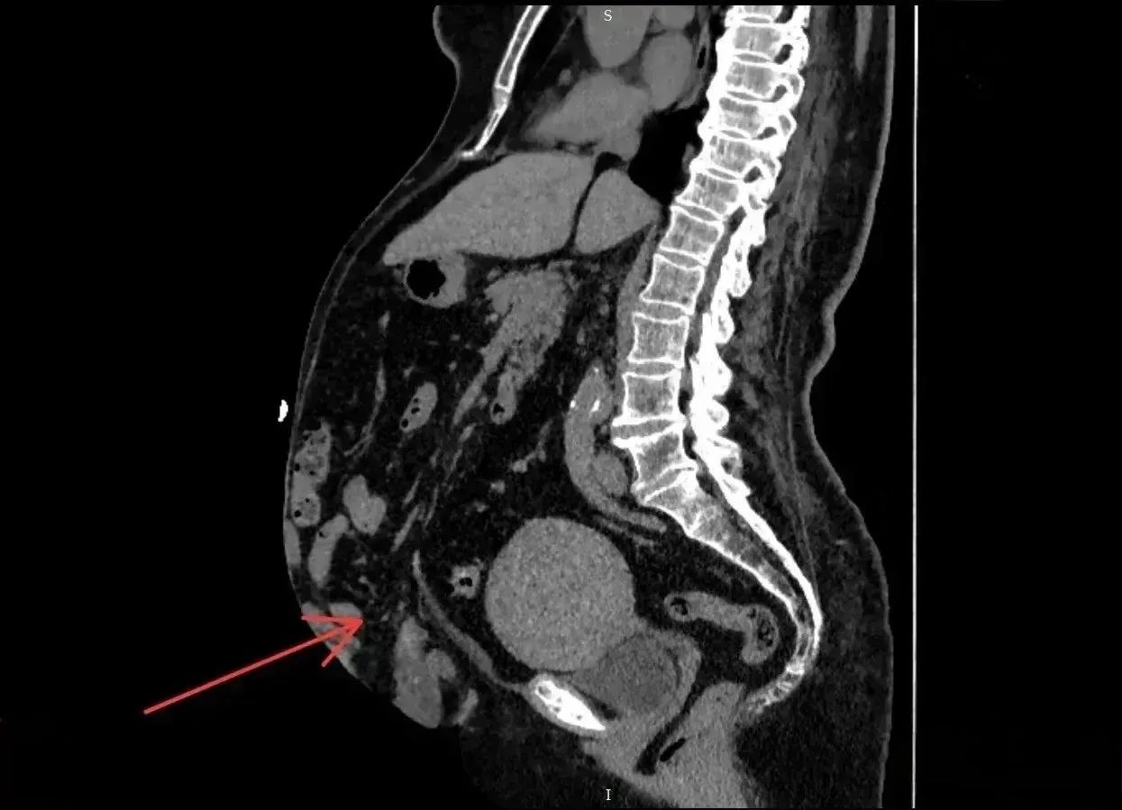 Результаты компьютерной томографии показали, что грыжа достигла 41% от объёма брюшной полости.